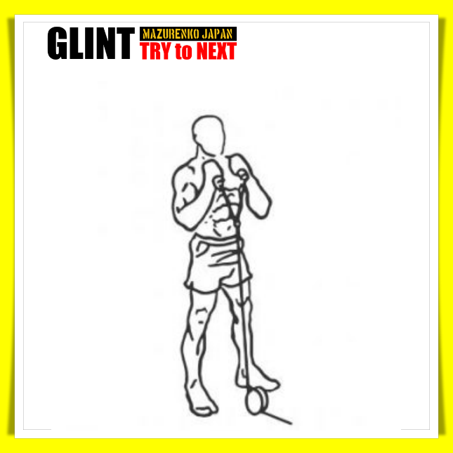 ①背すじを伸ばして立ち、片手でケーブルアタッチメントを保持して構える