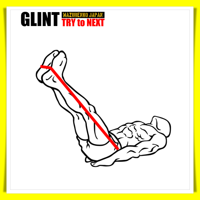 ③足を45度ほど上げたら、息を全て吐いて顎を引き、腹直筋を完全収縮させる