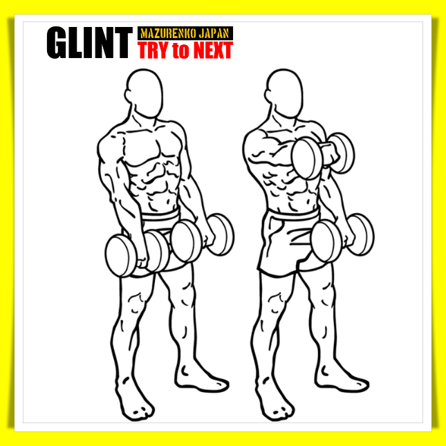 ③ダンベルを肩の高さまで上げたら、ウエイトに耐えながら同じ軌道で元に戻る