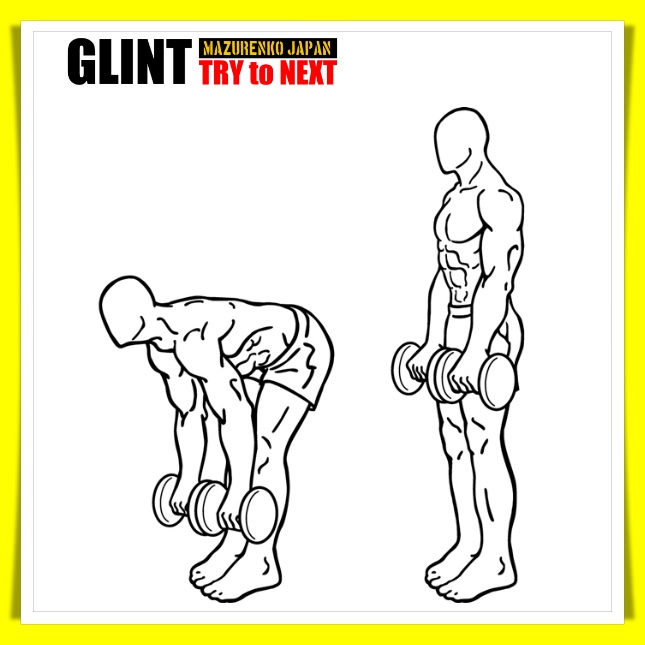 ダンベルスティッフレッグドデッドリフトの大切なポイントは二つあり、まずは膝を真っ直ぐに保って動作すること、そしてフィニッシュでやや骨盤をつき出すようにして臀筋群を完全収縮させることです。