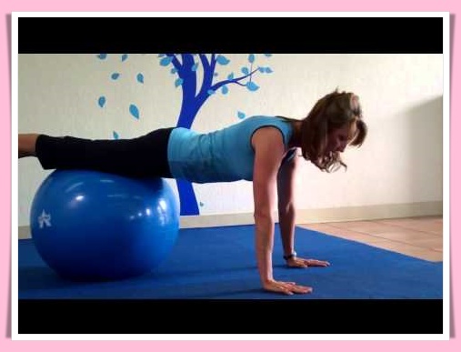こちらの動画が、バランスボールの反発力を筋力の補助に使う低強度のバランスボール腕立て伏せです。
