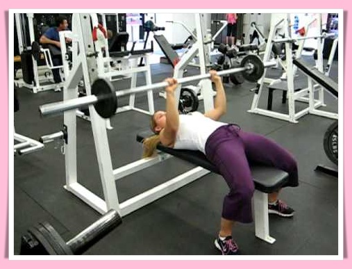 ナローベンチプレスは女性の二の腕シェイプアップに効果があるほか、バストの位置を寄せる作用もあります。