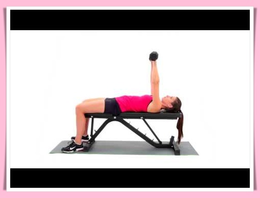 ③ダンベルを押し上げたら、肘をしっかりと伸ばし、顎をやや引いて大胸筋と上腕三頭筋を完全収縮させる