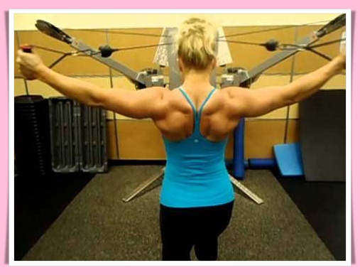 【ケーブルリバースフライ女性版】背中上部を集中してシェイプアップするマシン筋トレ