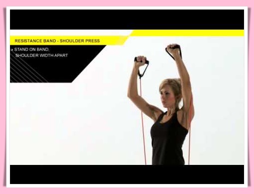 こちらの動画がチューブショルダープレスの模範的な動画です。肘が肩のラインより後ろにこないように動作するのが大切なポイントです。
