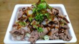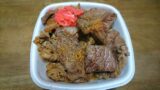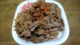 吉野家の牛丼に牛赤身肉ステーキを追加して高タンパク質化を行いました。