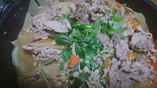 最後に刻みネギを加え、蓋をして数分間蒸したら豚汁は完成です。