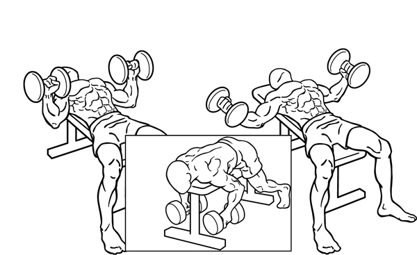 ④腕を閉じたら、ダンベルを少し押し上げながら顎をやや引いて大胸筋を完全収縮させる