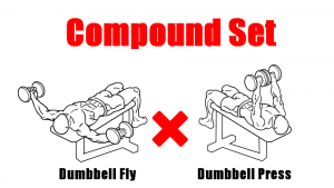 通常のトレーニングでは、一つの筋肉に対して一つの種目をインターバルをはさみながら数セットずつ行なっていきます。しかし、コンパウンドセット法では、一つの筋肉に対して二つの種目をインターバルをはさまずに連続で行います。