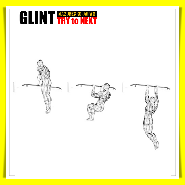 マッスルアップの懸垂動作は、通常の懸垂とは大きく異なり、懸垂動作でNGとされる動作(全身の反動を使う動作)で身体を引き上げ、膝を曲げ背中を丸めて行います。その手順は以下の通りです。