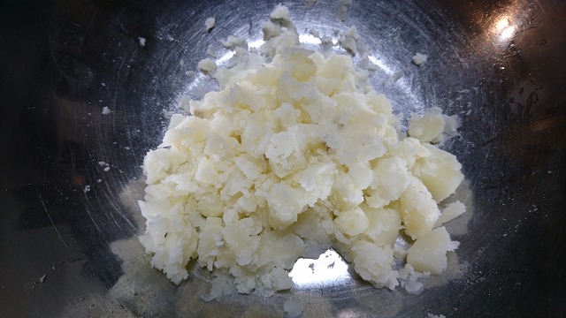 こちらが、筋トレ向きコロッケの材料で、じゃがいも1個に対して合挽きミンチ約250とかなりの高タンパク質化をはかりました。