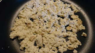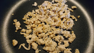 まずは、豆腐をテフロン加工のフライパンで油を使わずに炒めていきます。