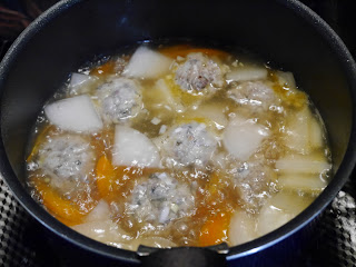 この時あまり強く煮立たせすぎてしまうと、つみれがどんどんボロボロになってしまうので弱火で火を通していきます。