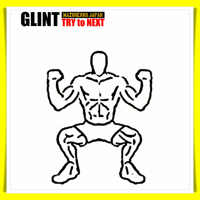 ②膝がつま先よりも前に出ないように気をつけ、お尻を突き出しながらしゃがんでいく