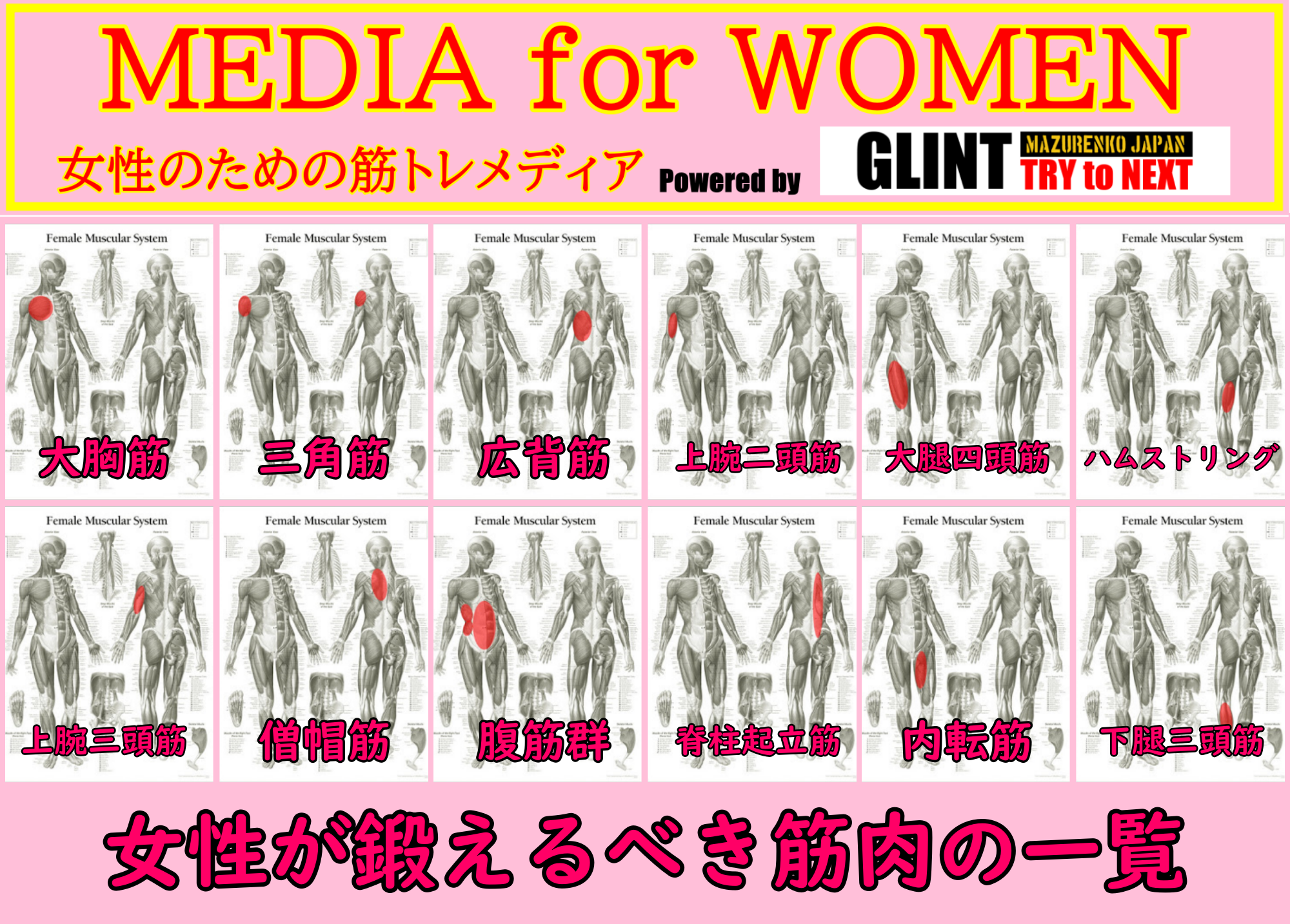 女性にとっては、すこし取り組みにくい課題かもしれませんが、しっかりと覚え、日々の健康づくりや身体つくりにお役立てください。