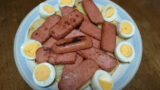 副菜として魚肉ソーセージを加えています。魚肉ソーセージは高たんぱく質で価格も抑えやすく、日常的に取り入れやすい優秀な筋トレ食材です。複数のたんぱく質源を組み合わせることで、食事の偏りを防ぐことも意識しています。