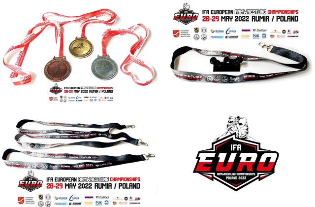 【希少品】IFAユーロアーム(ヨーロッパ選手権)ID用ネックストラップ&ミニオブジェセット | アームレスリング器具・パワーリフティング用品・マズレンコ製作所日本正規輸入代理店