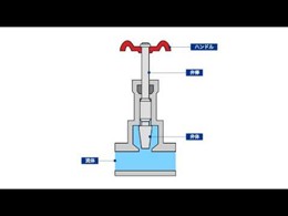 ダイヤフラムバルブは後述のゲートバルブの発展型のような構造を持っており、ゲートに向かって止水性の高いゴム弁が押し込まれることで水をせき止めます。止水力が高いため、主にドレンバルブ(排水弁)として使用されます。長期間使っているとゴムが若干伸びてくるため、インジケータ部を外してステムのナットを増し締めする必要があります。