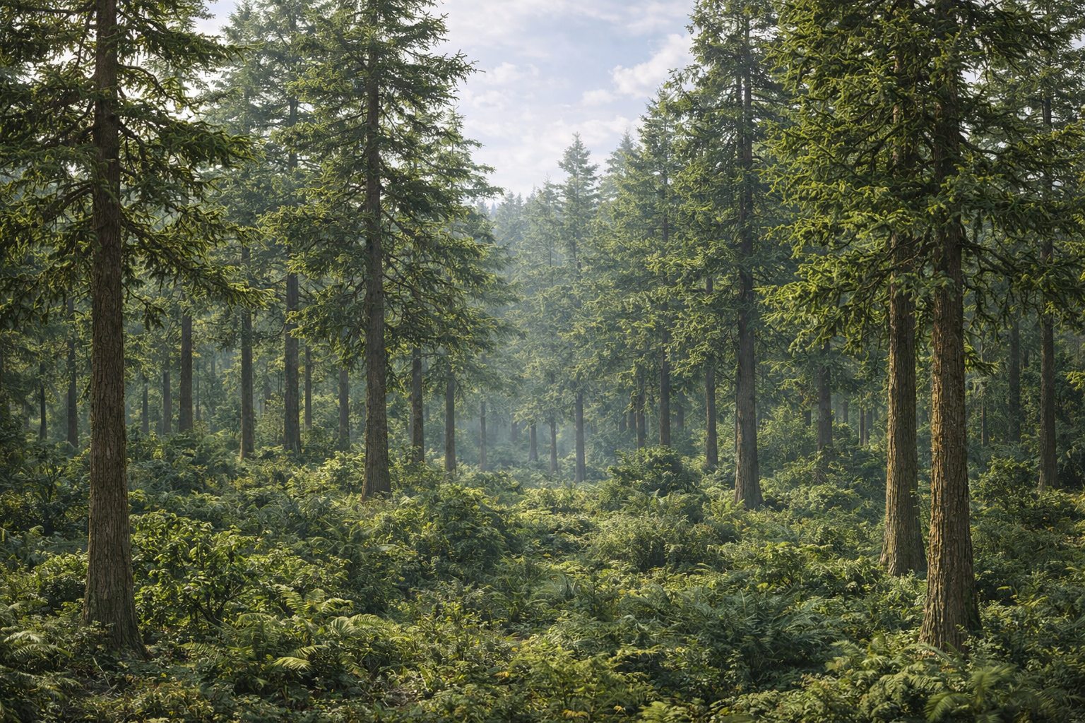 デボン紀の幕開けとともに、陸上には大きな変化が訪れました。それまで膝丈ほどの高さしかなかった植物が、木材組織を獲得することで数メートルから数十メートルの「木」へと成長し、地球史上初の森林が形成されました。
