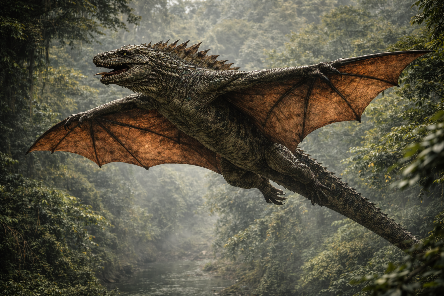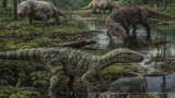 密林環境に適応した半樹上性大型爬虫類で、登攀能力と簡易的な翼による滑空能力による高い捕食戦略を発達させました。頂点捕食者として個体数調整機能を果たしていました。全長約5m。