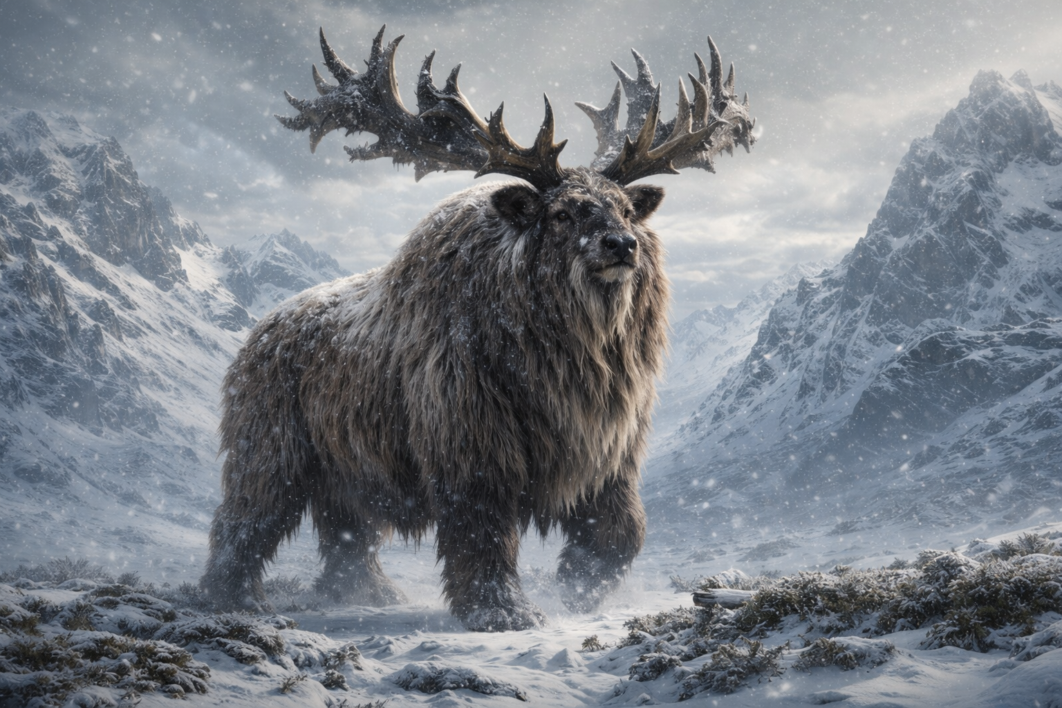 旧時代のウシ科やシカ類を基盤として設計・改変された大型草食獣で、全身を覆う極厚の体毛と皮下脂肪によって極寒環境でも活動できました。低栄養環境に適応するため、苔類や耐寒植物も摂食可能な消化器系を持っています。
