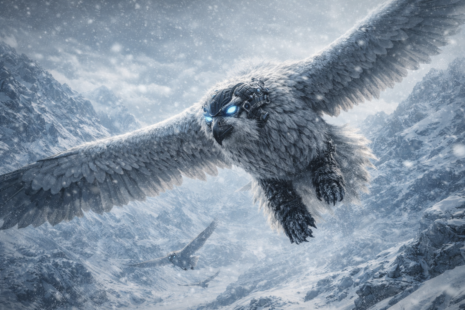 大型猛禽類を基盤とした飛行生物で、幅広い翼によって弱い上昇気流でも滑空が可能です。高断熱性の羽毛により、氷雪地帯でも繁殖を維持しました。