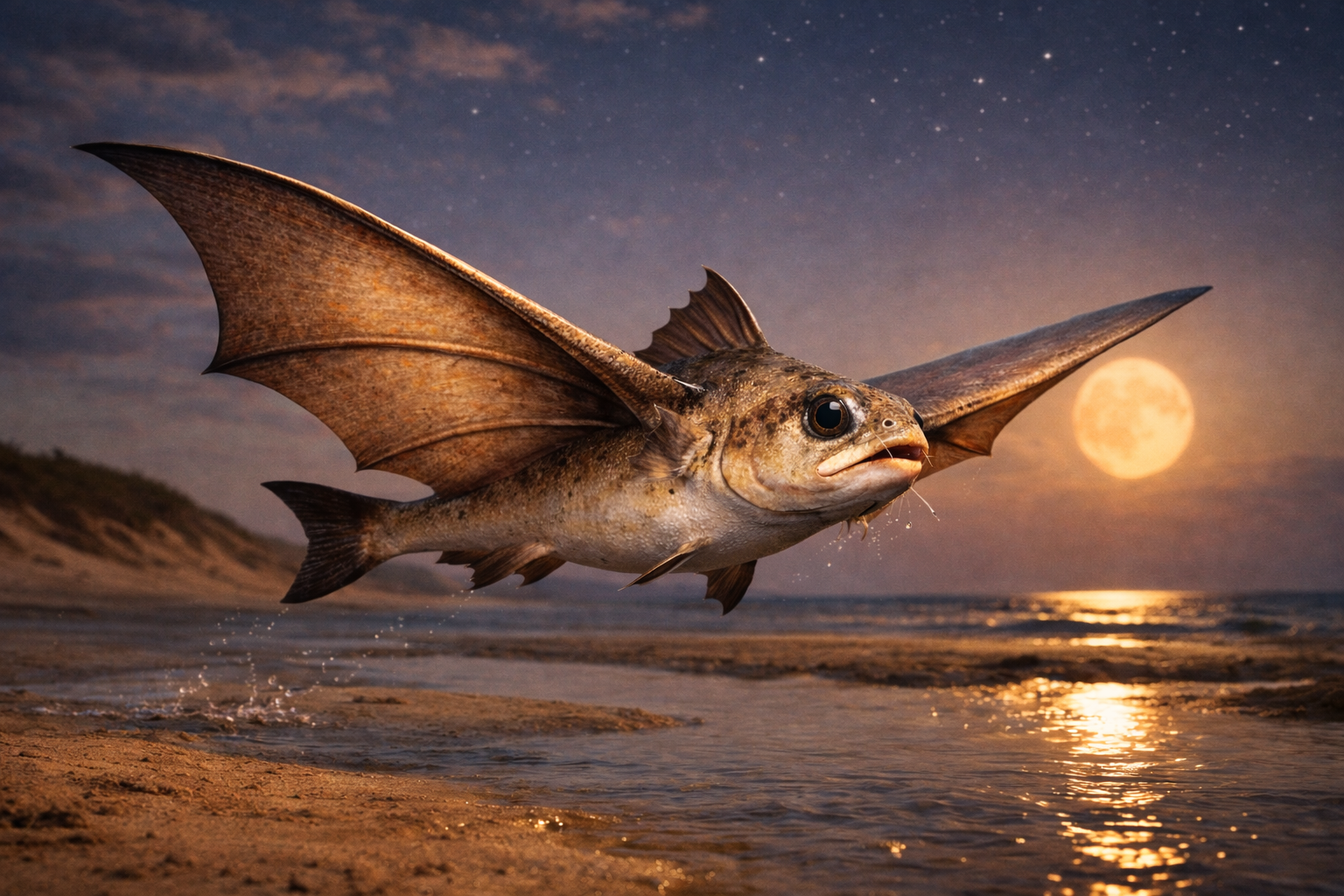 乾燥沿岸域に適応した滑空型魚類です。干潟や浅瀬から短距離滑空し、夜間に餌場を移動する能力を獲得しました。高温海水にも耐える耐熱タンパク質を発達させています。
