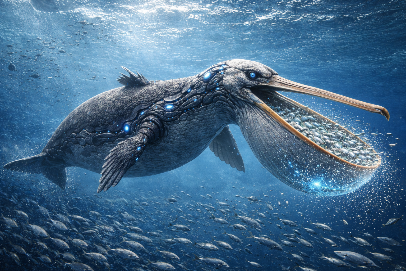 クジラ類の衰退後、海洋生態系の上位層に進出した巨大潜水型ペリカンです。体長・体重ともに現生クジラ類に匹敵し、主にプランクトンを摂食する濾過摂食型へと進化しました。外洋域における主要な一次消費者として機能していました。