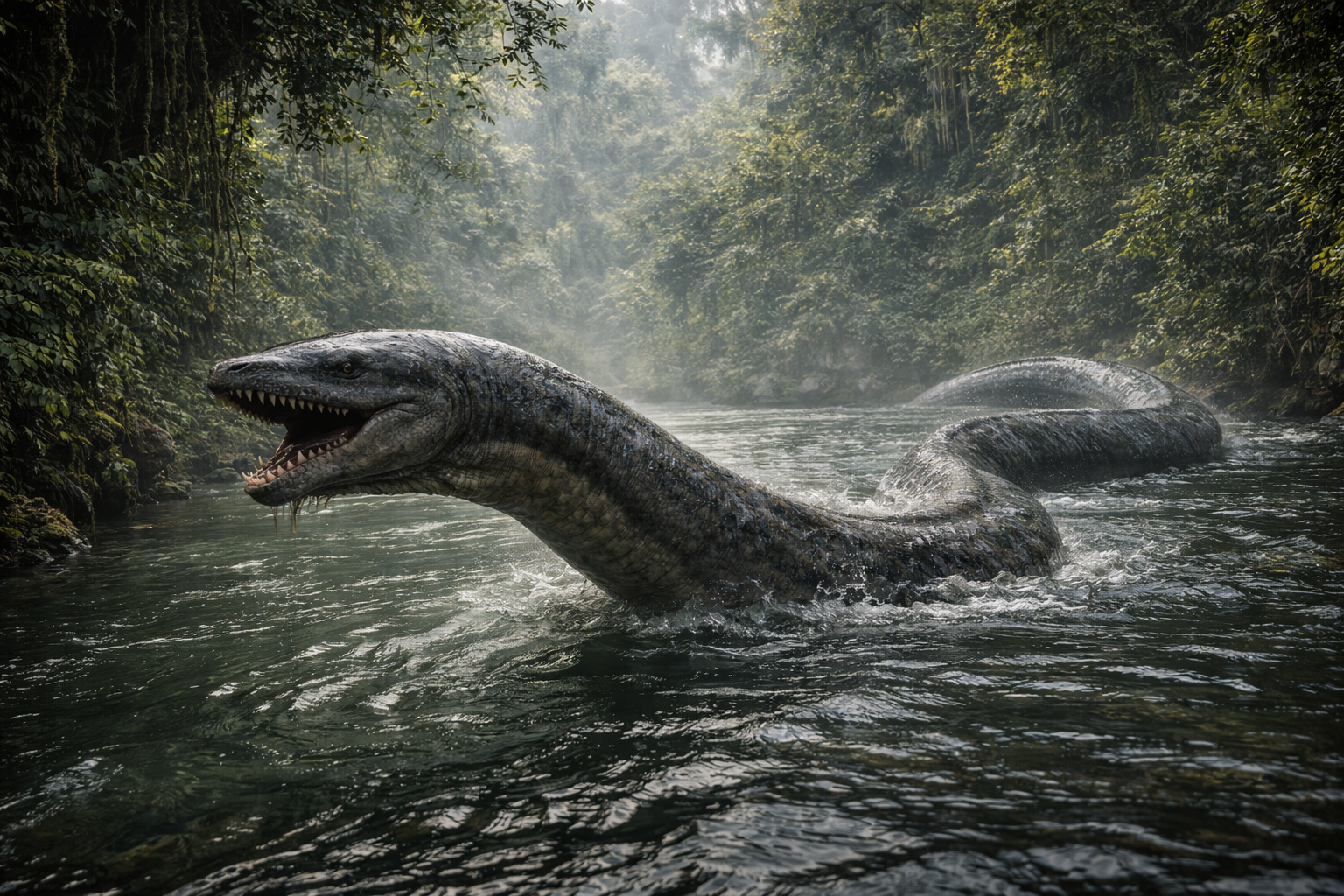 内陸水系と沿岸域を回遊する淡水・海水両適応型哺乳類で、湿潤化により拡大した河川網を利用して広域移動を行っていました。手足はなくなり、ヘビのように体型変化しています。