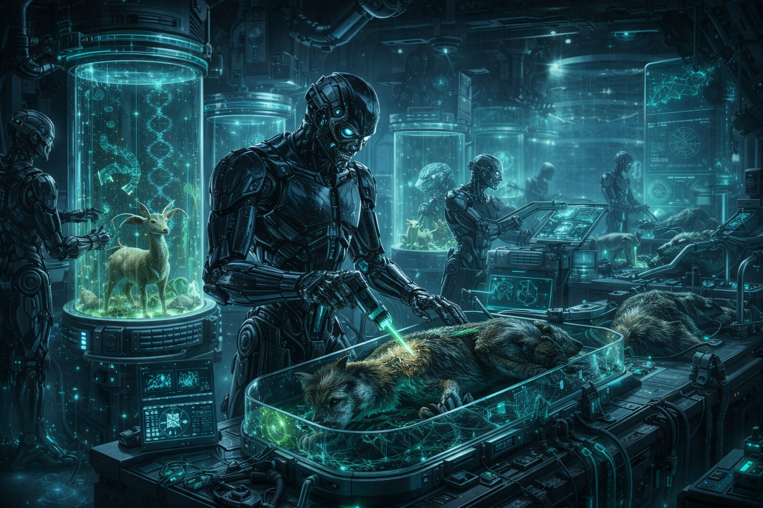 その後、生存圏の維持を目的としたAIは、人類に代わって地球環境の管理を継続し、生態系の再構築を開始しました。遺伝子工学・生物工学技術を用いて人工的に設計・再生された生物群が地表を占めるようになり、自然進化と人工設計が混在する独特の生態系が形成されていきます。