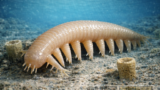 アイシュアイアは、原始的な葉足動物で、環形動物に突起状の肢が生えたような形態をしています。眼や口器も未発達でしたが、頭部には付属肢状の突起が見られました。体長は最大で6cm程度であったと推測されています。海底を這うように歩いて移動する生活をしており、海綿の化石と同時に発見されることから海綿動物を捕食してたと考えられています。