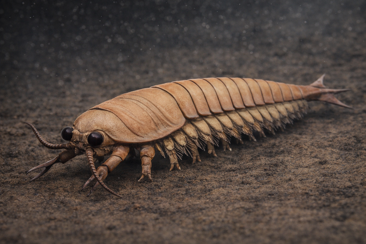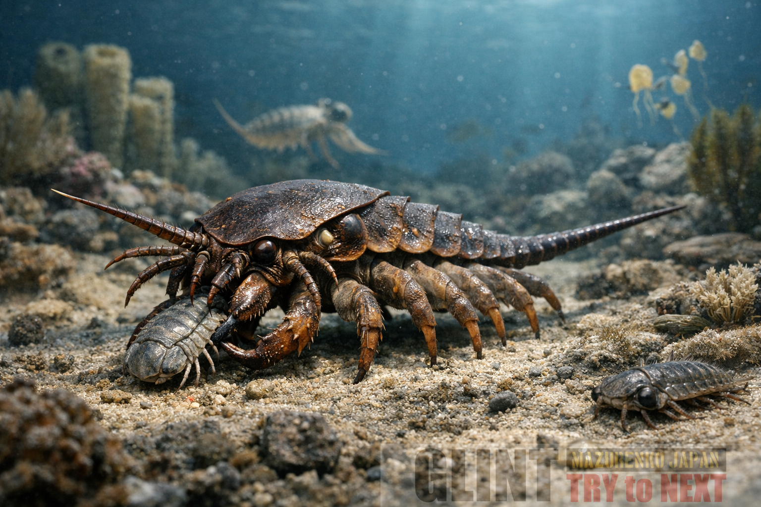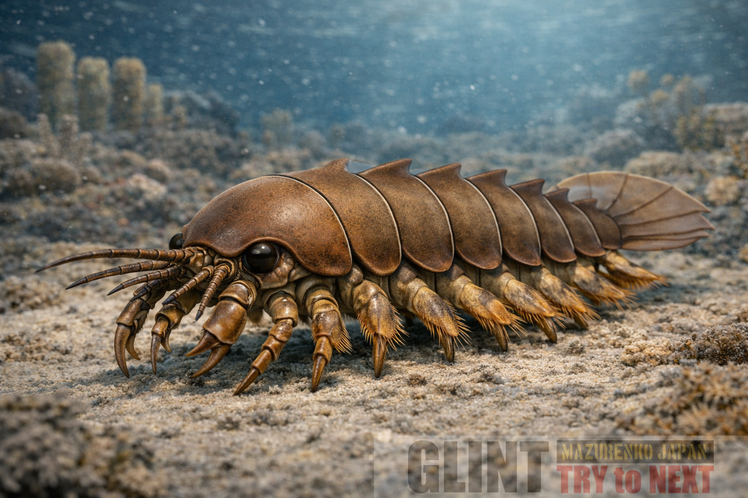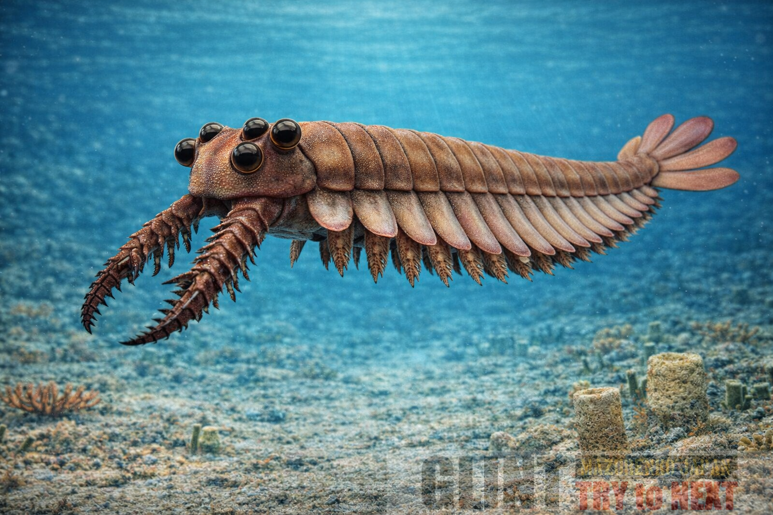 古生代(カンブリア紀)の海には、現在では考えられないような姿をした巨大な節足動物(恐蟹類とも呼ばれる)が大繁栄していました。
