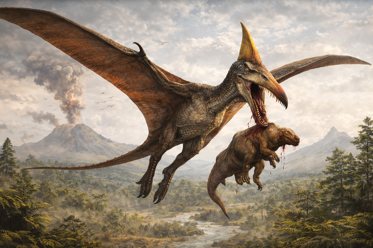 翼開長20メートル級に達した飛翔生物で、高高度滑空による長距離移動と大型獲物の捕獲を可能としていました。