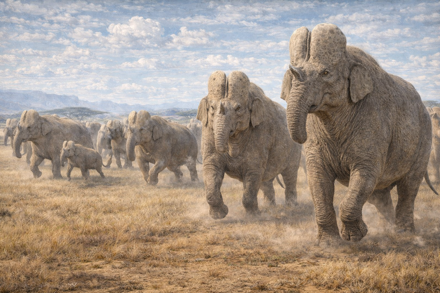 数十頭規模の群れで回遊し、植生分布や地形形成にも影響を与える環境改変者として機能します。捕食者には集団防衛で対抗し、成体はほぼ無敵に近い存在です。