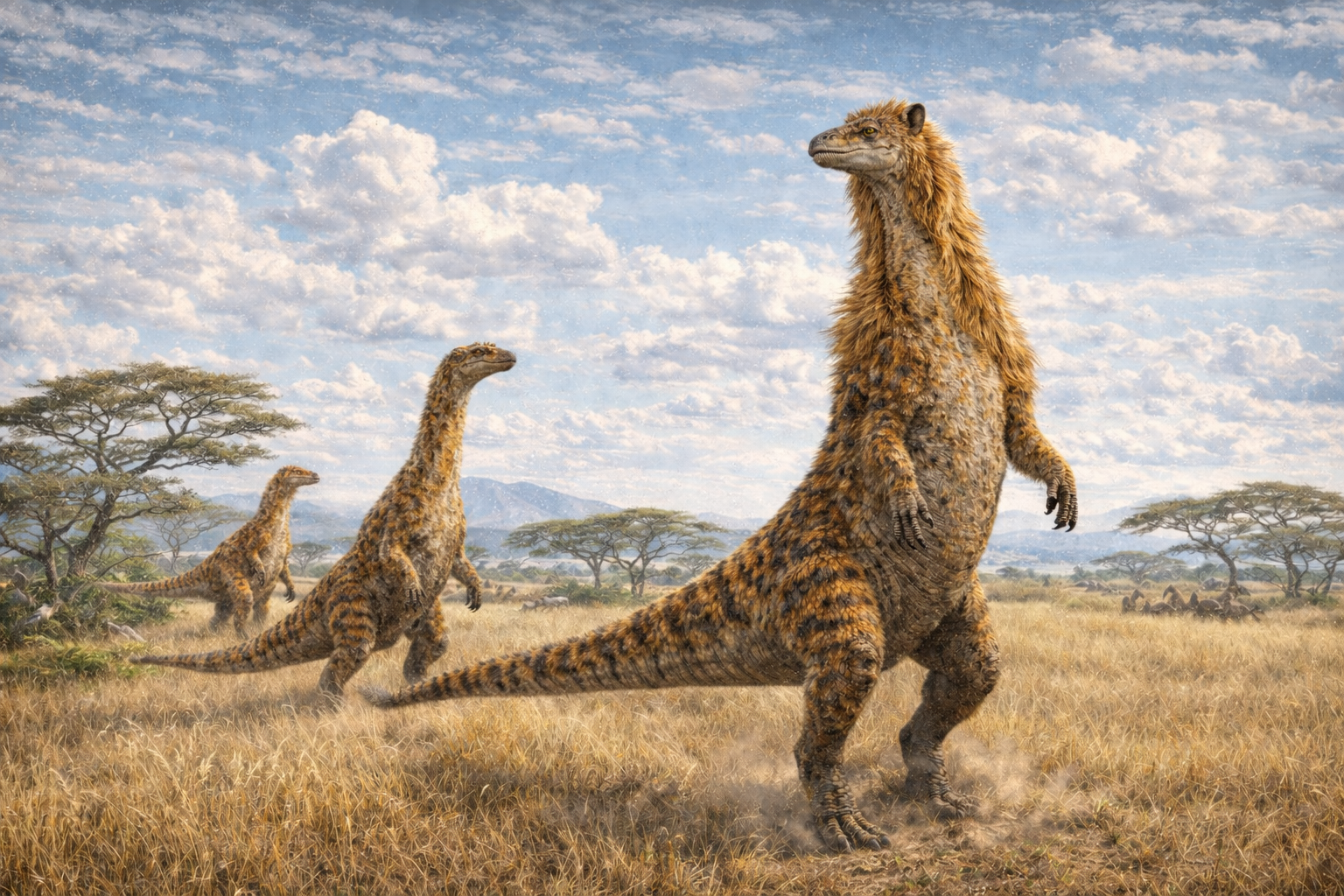 気候が安定したことで、生態系は高度に多様化しました。恐竜は巨大化よりも社会性や知能の発達を重視する方向へ進化し、複雑な行動様式を獲得していきます。氷河期に獲得した羽毛は短い毛に変化しています。