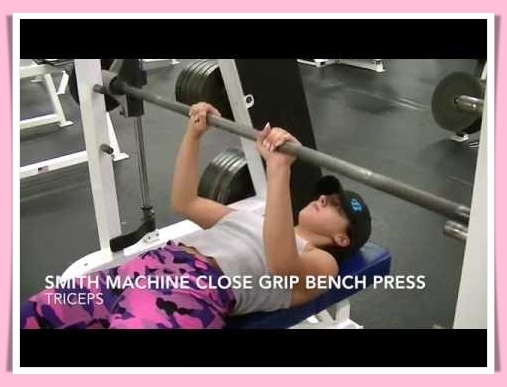 【スミスマシンナローベンチプレスのやり方女性版】フリーウエイト感覚の二の腕ジム筋トレ