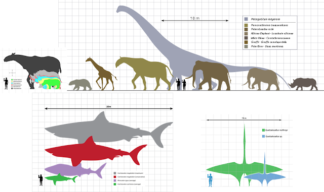巨大生物図鑑…現存する海や空や陸のモンスターたち、そして絶滅した古代の恐竜や巨大生物のフリー画像と動画と集めました。巨大な生物には迫力を超えた荘厳さすらあり、いつの時代も男性のロマンとも言えるジャンルです。これら現生と古代と両方の巨大生物たちを、生物学博物館学芸員の筆者が大きさ比較イラストもまじえつつ解説していきます。