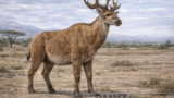 ギガンテウスオオツノジカ(Megaloceros giganteus)は、約200万年前から約7700年前にかけてユーラシア大陸の北部に分布していた巨大なシカです。体長3.2m・体重700kg以上に達したと考えられています。