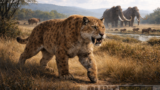 スミロドン(Smilodon)は、新生代第四紀更新世(約250万~8千年前)の南北アメリカ大陸に生息していた肉食哺乳類で、その長い牙からサーベルタイガーとも呼ばれます。