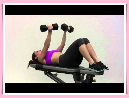 なお、本種目をコントロールできる軽めの重量で、脇を軽く開いて行うと上腕三頭筋に効果的で、このバリエーションをダンベルトライセプスプレスと言います。