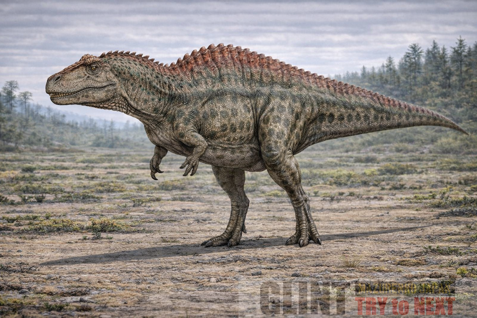全長は約11〜12mに達すると推定される大型肉食恐竜で、ティラノサウルス以前の北米最大級捕食者でした。最大の特徴は背中に並ぶ高い神経棘で、筋肉支持構造や体温調節、視覚的ディスプレイなどの機能が推定されています。頭骨は頑丈で、強力な咬合力を備えていました。