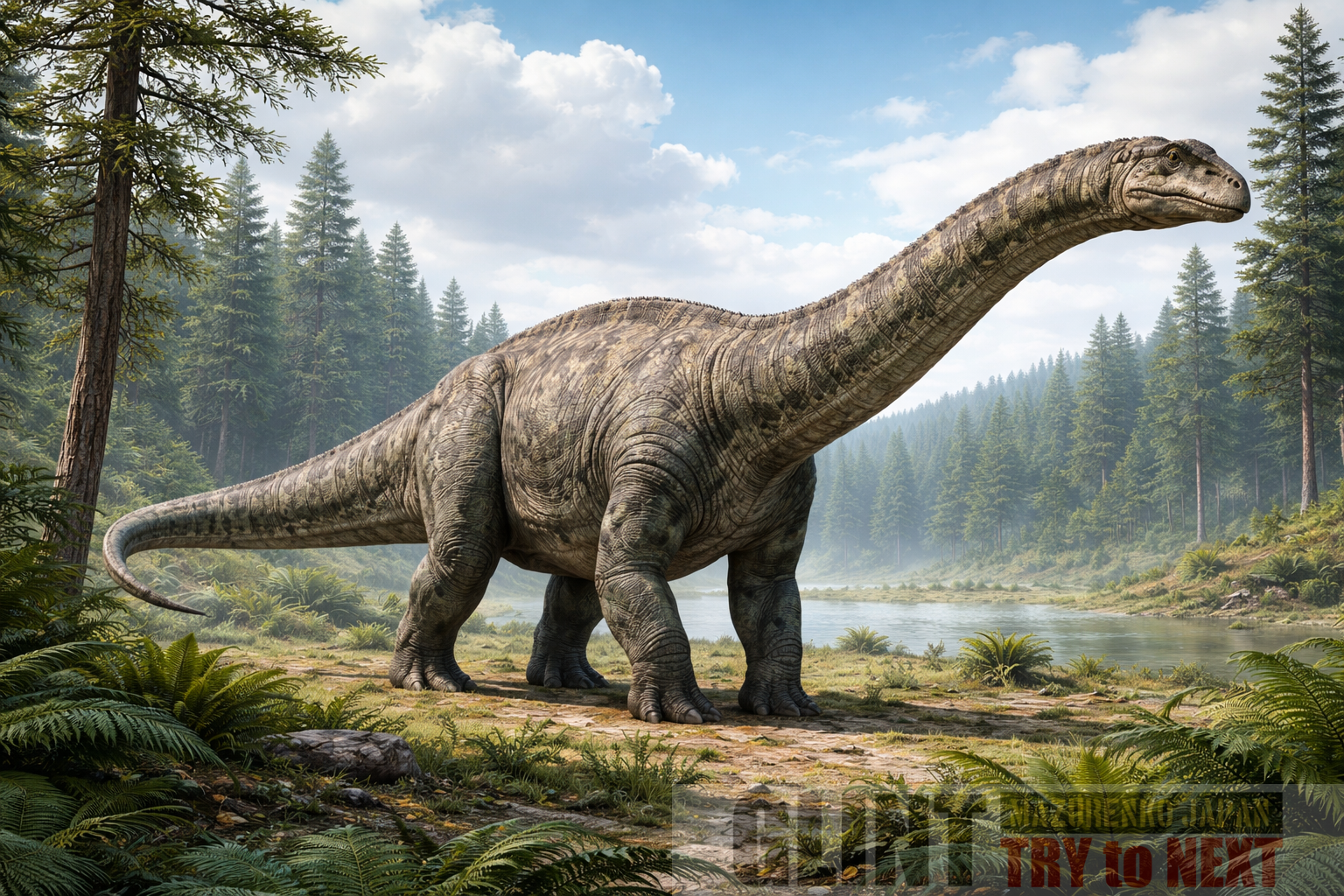 シダ類や裸子植物などの大量の植物を摂取する草食性恐竜で、群れを形成して移動しながら採食していた可能性があります。巨大な体格によって捕食者から身を守り、生態系において主要な一次消費者として重要な役割を担っていました。