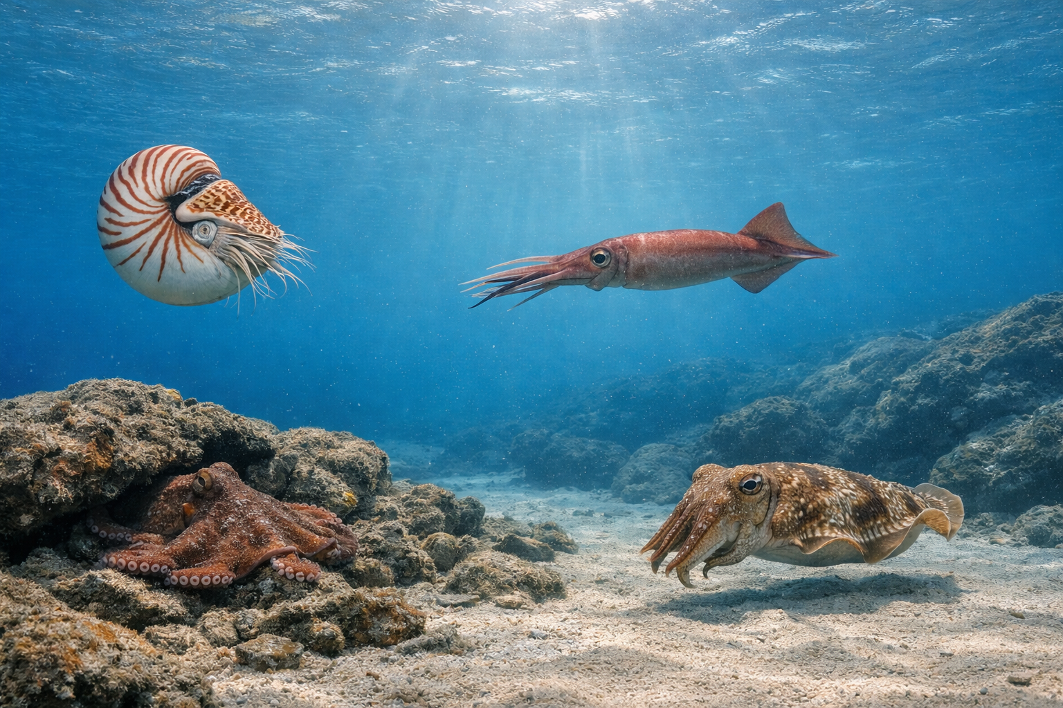 これらの現生種は、殻を捨てて知能化した頭足類の進化の最終形と言えます。