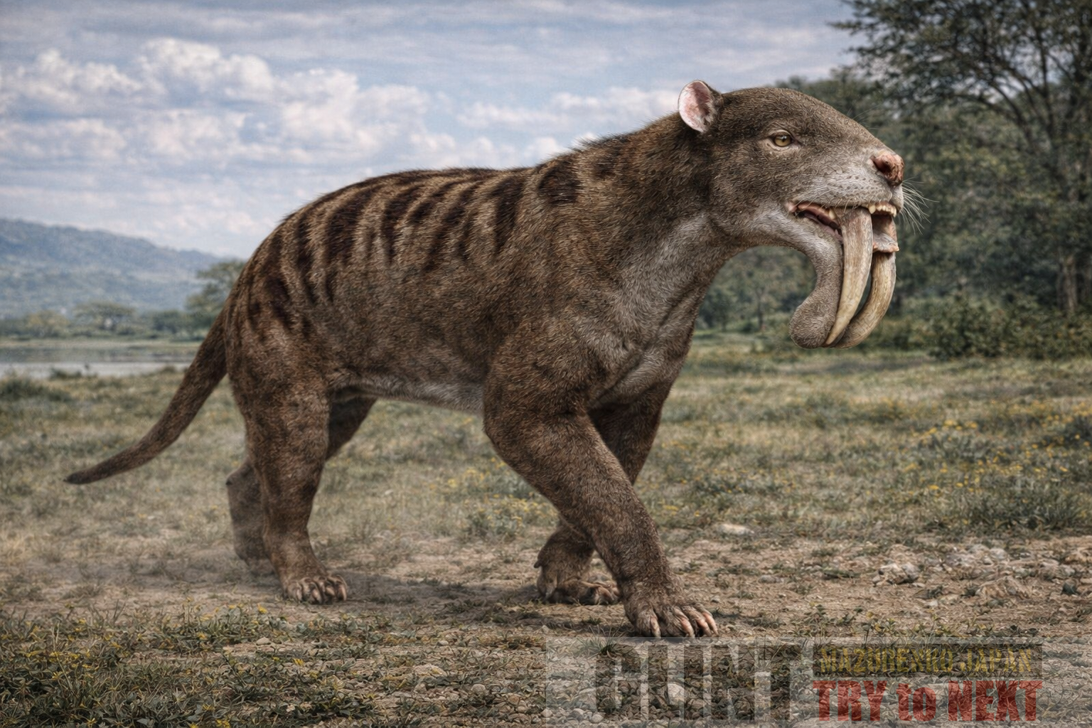 中新世南米の有袋類捕食者。真獣類と無関係に長大な犬歯と大開口を獲得し、剣歯型の機能を独立に再現しました。