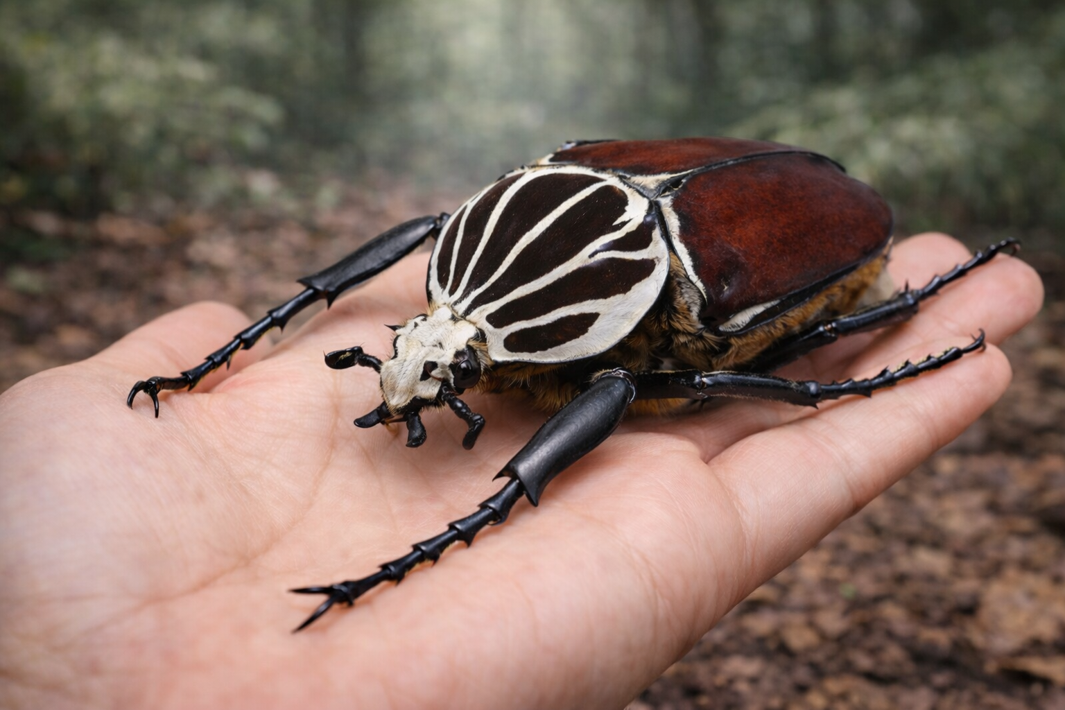 甲虫類は重い外骨格を持つため、巨大化に強い制約を受けます。ゴライアスは重量最大級、タイタンは体長最大級です。外骨格と飛翔能力のバランスの限界点に位置する存在であり、装甲型昆虫進化の到達形といえます。