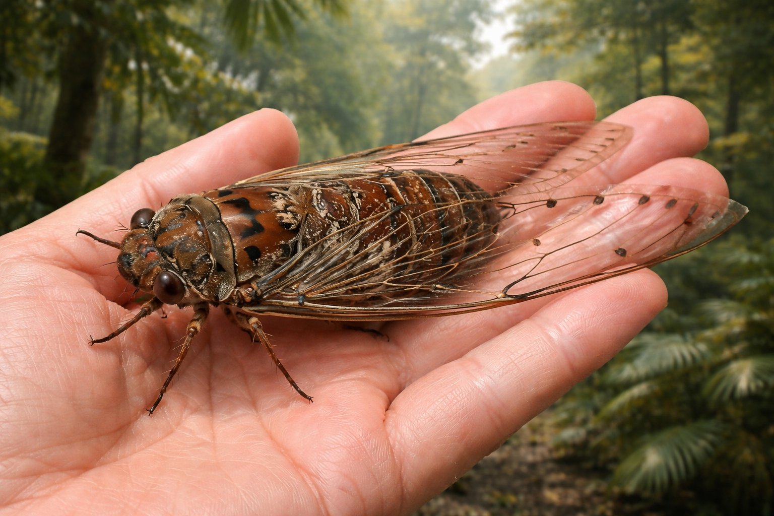 現生最大種:テイオウゼミ(Megapomponia imperatoria)
