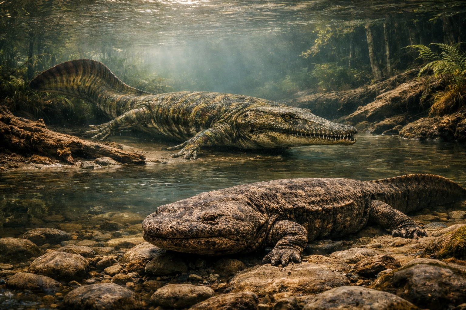 現生最大の爬虫類で、水辺を舞台に大型捕食者として成立します。完全陸上ではなく水辺利用が、現代爬虫類の大型化を支える条件になっています。