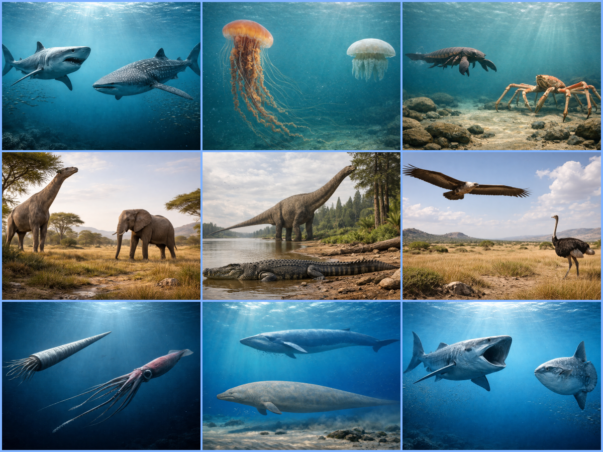 地球史では、時代ごとに「最大生物」の主役が交代してきました。本記事では、主要分類群ごとに、化石種と現生種の最大級生物を比較し、その進化背景を学芸員の視点で解説します。