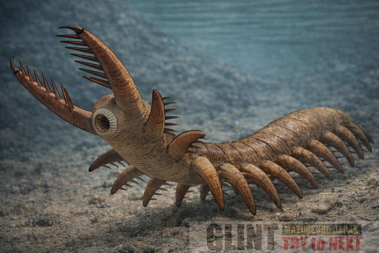 古生代(カンブリア紀)の海には、現在では考えられないような姿をした巨大な節足動物(恐蟹類とも呼ばれる)が大繁栄していました。
