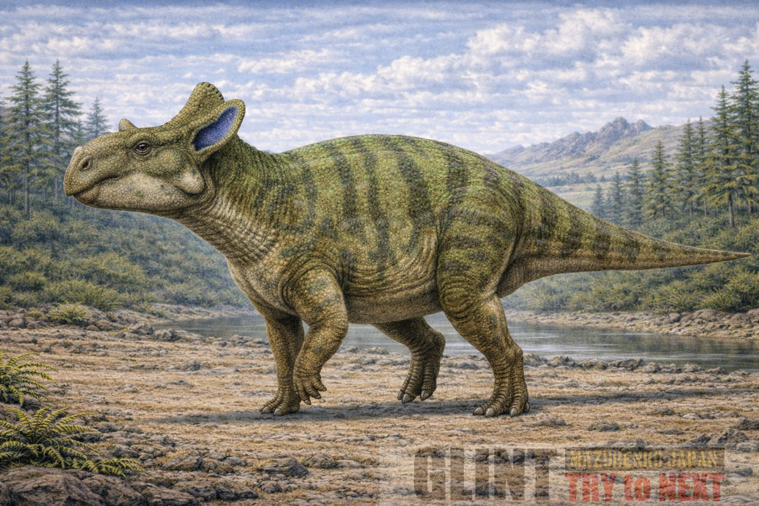 全長は約2.5〜3m前後と推定される小型恐竜で、比較的短いフリルと小型の嘴を備えていました。角はほとんど発達しておらず、原始的な角竜類の形態を保持していました。後肢が発達しており、俊敏な移動が可能でした。